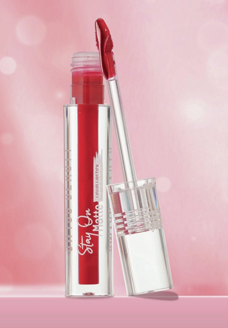 The Stay On Matte Lipstick, designed to be smudge-proof and transfer-proof for long-lasting wear. The formula combines a matte finish with lip care benefits, containing Vitamin E and Shea Butter to keep lips soft and hydrated. Available in 18 shades, the lipstick is made to suit all skin types and maintain colour through daily activities without frequent touch-ups.