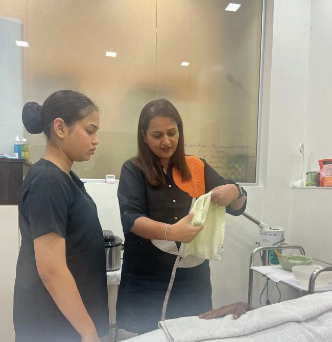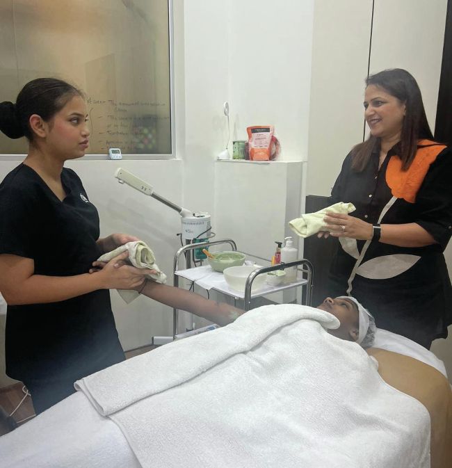 Formal training played a crucial role in shaping her discipline and approach. She pursued a BVoc degree from Symbiosis International University, Pune, where she received structured exposure to make-up, hair, and skincare through both theoretical and practical learning. “It taught me professionalism. Internships during the course gave me invaluable real-world experience,” she notes.
