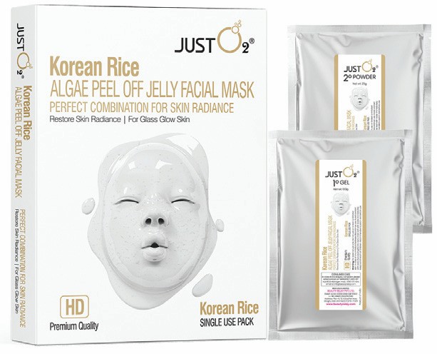 The Korean Rice Algae Peel Off Jelly Facial Mask is a gel-and-powder mask designed to hydrate and brighten the skin. The formula contains hydrolysed rice water to improve skin radiance and reduce dullness. Spirulina and alginic acid help maintain hydration and leave the skin feeling soft. Licorice and tea tree oil work to soothe irritation and support clearer-looking skin. Once mixed, the mask forms a jelly texture that spreads evenly and sets before peeling off in one piece. The product is designed to leave skin smoother, refreshed, and visibly brighter after use.